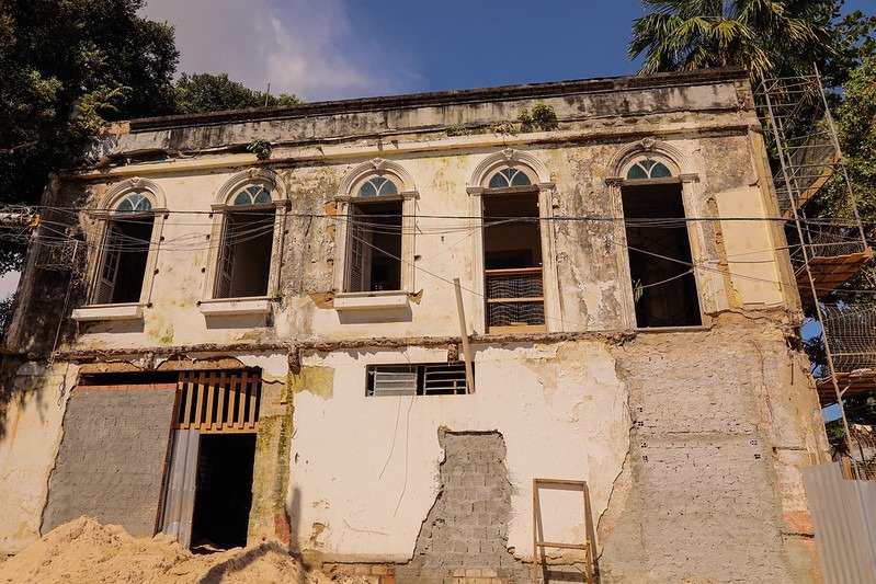Casario eclético de dois pavimentos, que ficou por muito tempo abandonado e sem uso no centro da cidade, o casarão Thiago de Mello é o primeiro projeto de restauro e reforma do “Nosso Centro”, lançado pelo prefeito de Manaus, David Almeida, e a obra avança na rua Bernardo Ramos, zona Sul.