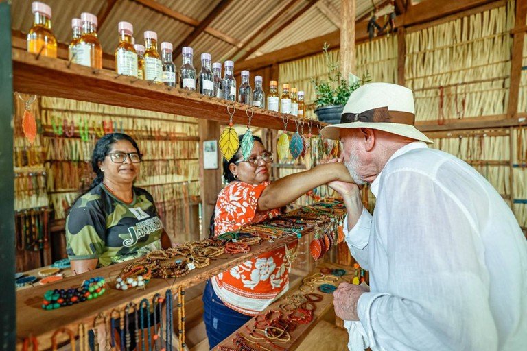 O presidente acompanhou o processo da extração do látex e da fabricação da borracha e conversou com moradores. No bate-papo, defendeu que a escolha de um estado amazônico como o Pará para sediar a COP30 é a chance para que líderes mundiais atuantes na defesa da preservação da Amazônia conheçam o bioma e a realidade dos povos locais.