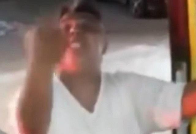 O detido bateu na lateral do ônibus quando tentava passar pela via. Após a colisão, ele desceu do veículo e fez ameaças ao condutor do coletivo. No momento da discussão, um outro motorista de ônibus parou ao lado para prestar apoio à vítima.