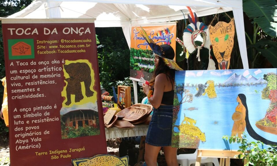 A trilha também incluiu uma apresentação de armadilhas guarani, no espaço Jeporaka Reko Reguá. Os indígenas explicam que, mesmo sem praticar a caça, esse conhecimento ancestral é repassado de geração a geração, fortalecendo raízes milenares. Lúcia Rodrigues, 68 anos, veio para o festival com amigos. Ela não conhecia a TI e, apesar de observar certa precariedade, disse ter se sentido transformada pela visita. “É triste que um povo tenha que pedir pela sua sobrevivência, mas, ao mesmo tempo, é muita coragem”, pontua. O passeio pela mata termina com uma música tradicional guarani, antes de retornar para as demais atividades da programação.