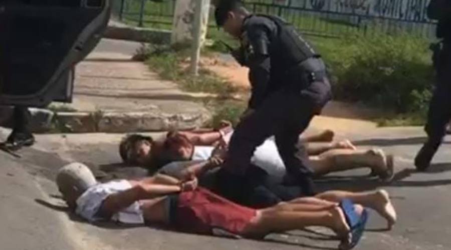 Manaus (AM) – Com a “cara no asfalto”, assim ficaram quatro bandidos após serem capturados pela Força Tática, em Manaus. Segundo a equipe policial eles praticavam arrastão em Manaus, além de serem apontados como assaltante de motoristas de aplicativos.