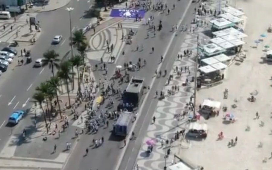 Fotos aéreas da Polícia Militar do Rio de Janeiro mostraram o tamanho do protesto na praia de Copacabana.