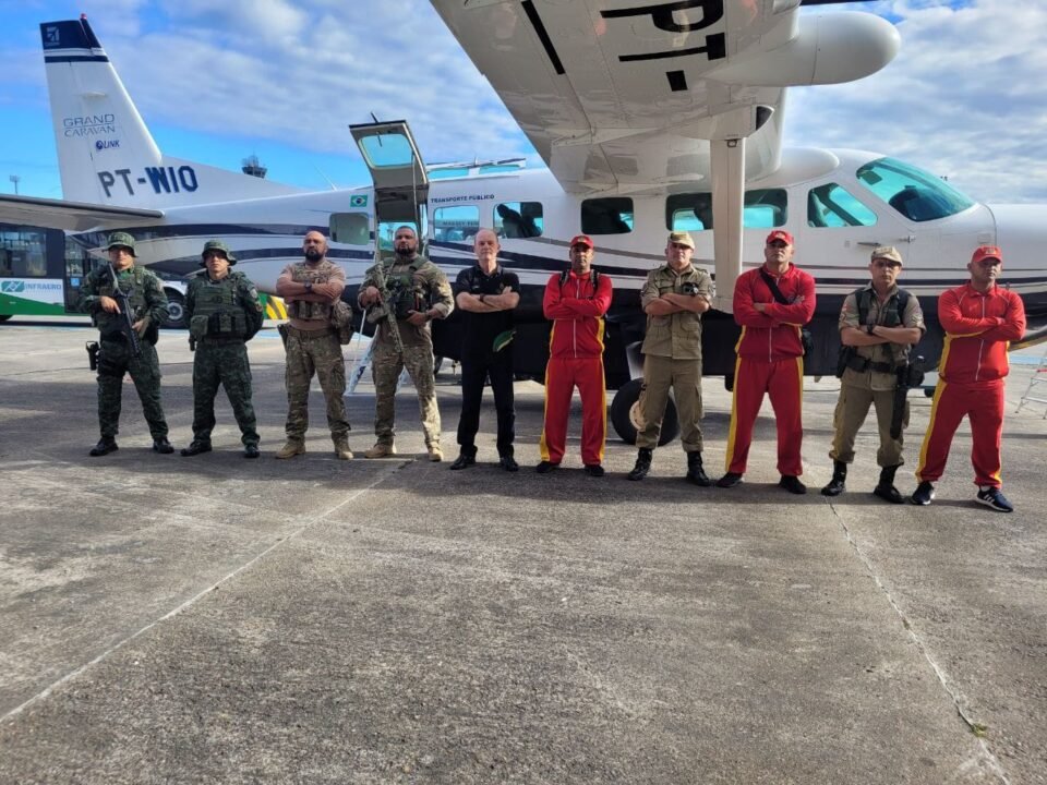 Na manhã de hoje, a SSP-AM enviou uma equipe de nove agentes, entre dois policiais militares do Batalhão de Policiamento Ambiental (BPAmb), da Polícia Militar do Amazonas (PMAM), dois policiais civis da Coordenadoria de Operações e Recursos Especiais do Amazonas (Core-AM), além de cinco militares do Corpo de Bombeiros Militar do Estado do Amazonas (CBMAM).