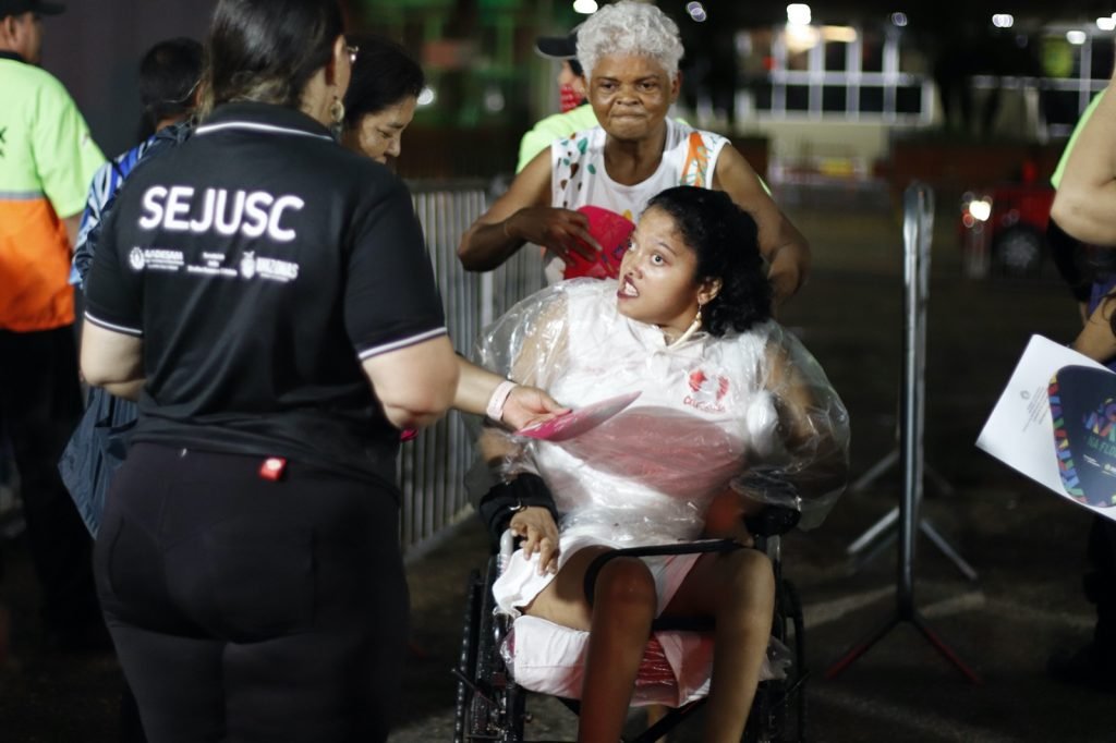 Na primeira noite, 38 PCDs acessaram o espaço. Além da área exclusiva, a Sejusc está disponibilizando uma van para fazer o transporte da Vila Olímpica até o Sambódromo.