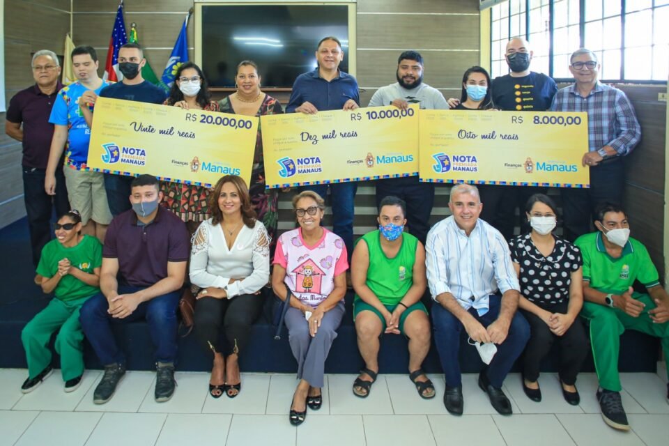Mais 27 contemplados da campanha Nota Premiada Manaus receberam seus cheques simbólicos da Prefeitura de Manaus. O sorteio nº 2022-20, realizado pela Secretaria Municipal de Finanças e Tecnologia da Informação (Semef), distribuiu um total de R$ 112 mil em prêmios. A premiação ocorreu nesta terça-feira, 9/8, no auditório da Associação de Pais e Amigos dos Excepcionais de Manaus (Apae) Manaus, localizada no bairro Parque 10 de Novembro, zona Centro-Sul.