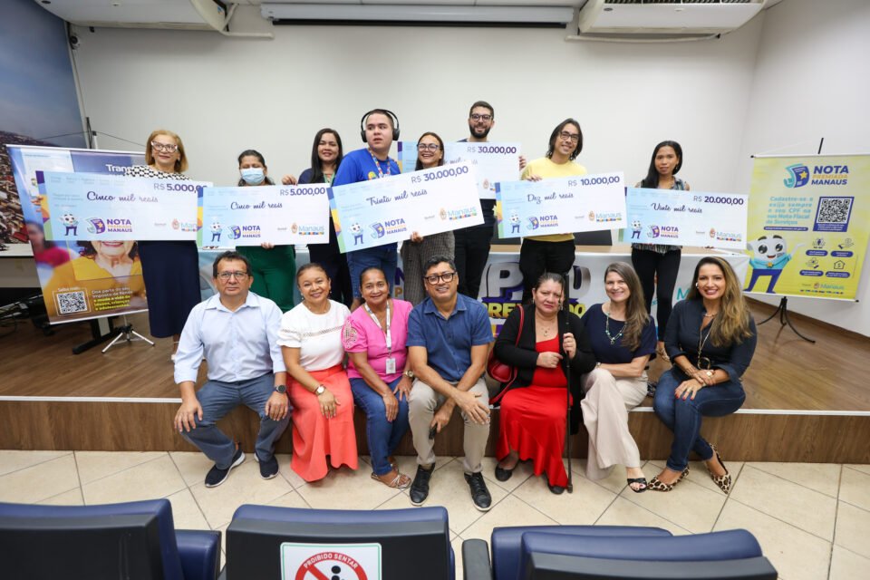 Mais uma entrega de prêmios da campanha “Nota Premiada” foi realizada pela Prefeitura de Manaus, nesta quarta-feira, 16/4, a segunda do ano. Dessa vez, as premiações corresponderam ao sorteio 202502, com base nas Notas Fiscais de Serviços Eletrônicas (NFS-e) emitidas no mês de fevereiro deste ano. A cerimônia de entrega dos cheques simbólicos aconteceu no auditório da subsecretaria da Receita da Secretaria Municipal de Finanças e Tecnologia da Informação (Semef), localizada na avenida Japurá, no Centro.