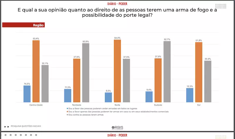 Aqui, os números do apoio à posse de arma por região do Brasil: