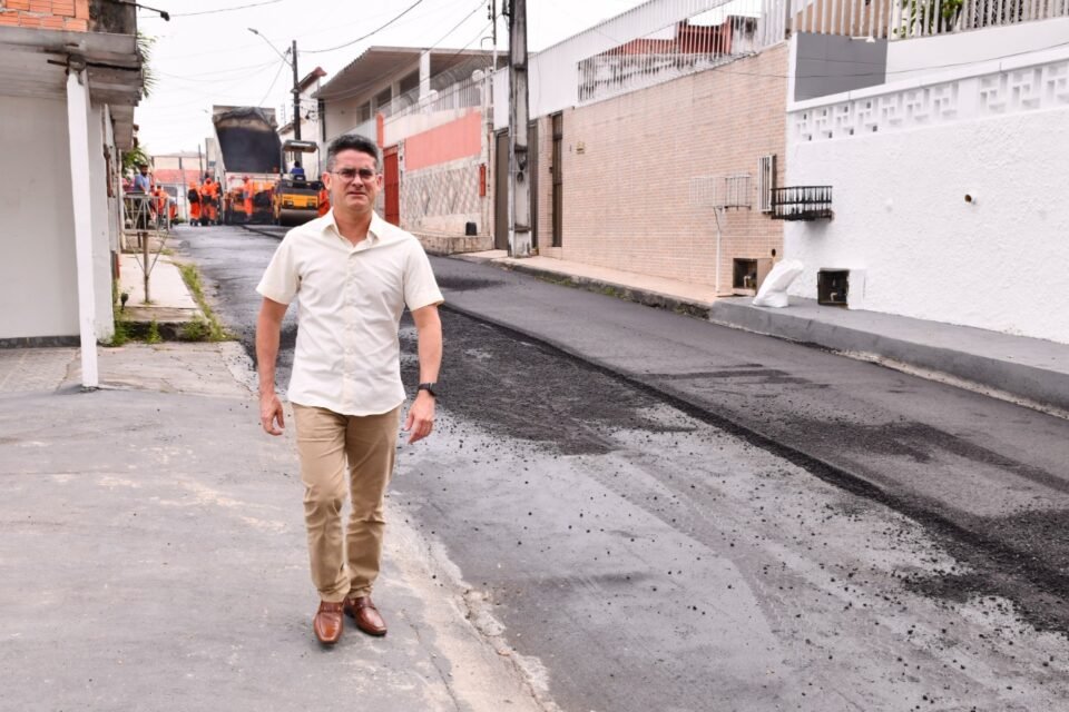 O prefeito de Manaus, David Almeida, acompanhou, nesta sexta-feira, 16/9, o avanço das obras do programa “Asfalta Manaus” pelas ruas do conjunto Manauense, no bairro Nossa Senhora das Graças, zona Centro-Sul da cidade. O trabalho, coordenado pela Secretaria Municipal de Infraestrutura (Seminf), tem o objetivo de levar trafegabilidade a 10 mil ruas em todas as zonas geográficas da capital.