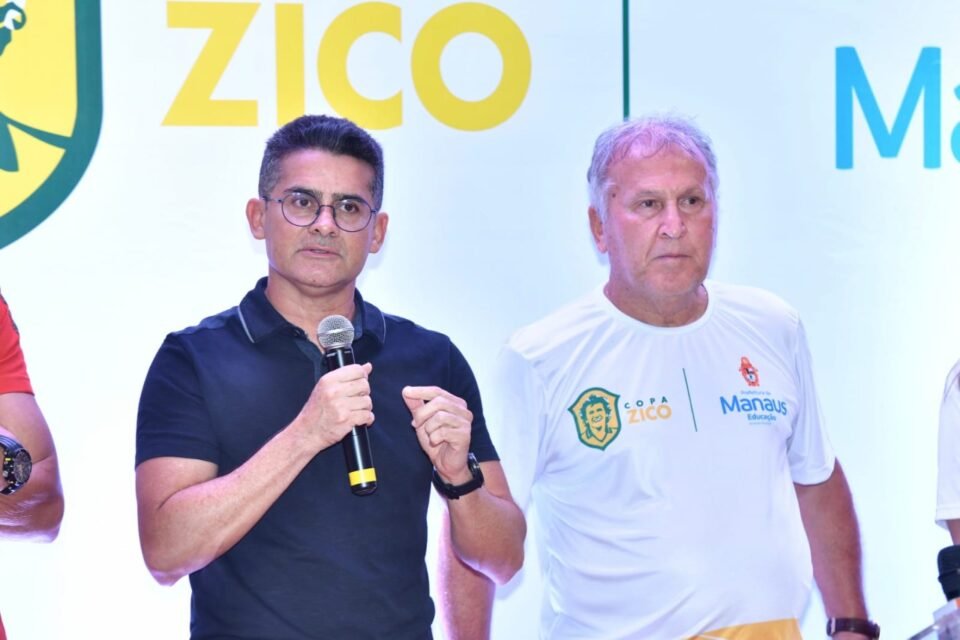 O prefeito David Almeida participou ao lado do ex-jogador do Flamengo e da seleção brasileira, Zico, da cerimônia de encerramento da Copa Zico, competição realizada pela Prefeitura de Manaus, por meio da Secretaria Municipal de Educação (Semed), que visa incentivar o desenvolvimento motor e psicossocial dos estudantes municipais por intermédio da prática esportiva.