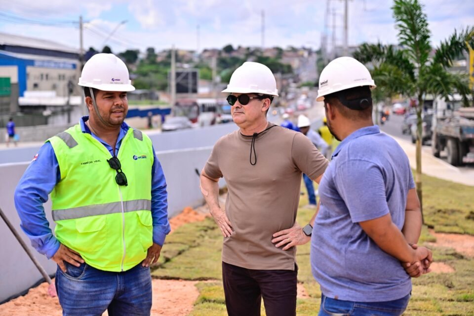 O prefeito de Manaus, David Almeida, realizou, na manhã desta sexta-feira, 20/6, mais uma vistoria técnica no complexo viário Rei Pelé, na zona Leste da capital. Com o tempo firme, as frentes de trabalho seguem em ritmo acelerado para a conclusão das etapas finais da obra.