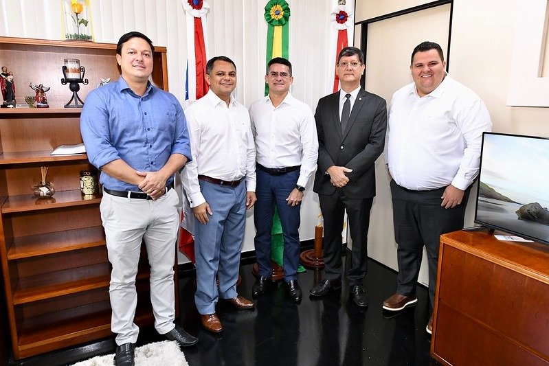 O prefeito de Manaus, David Almeida, acompanhado pelo titular da Secretaria Municipal de Infraestrutura (Seminf), Renato Júnior, e do subsecretário de Obras Públicas, Madson Rodrigues, reuniu, nesta sexta-feira, 1º/7, com o procurador-geral de Justiça do Estado do Amazonas, Alberto Rodrigues Júnior, do Ministério Público do Estado do Amazonas (MPAM), para tratar da implantação da nova ciclovia da avenida Coronel Teixeira, zona Oeste da capital. A previsão é que, até o final deste ano, a estrutura seja entregue para a população da capital amazonense.