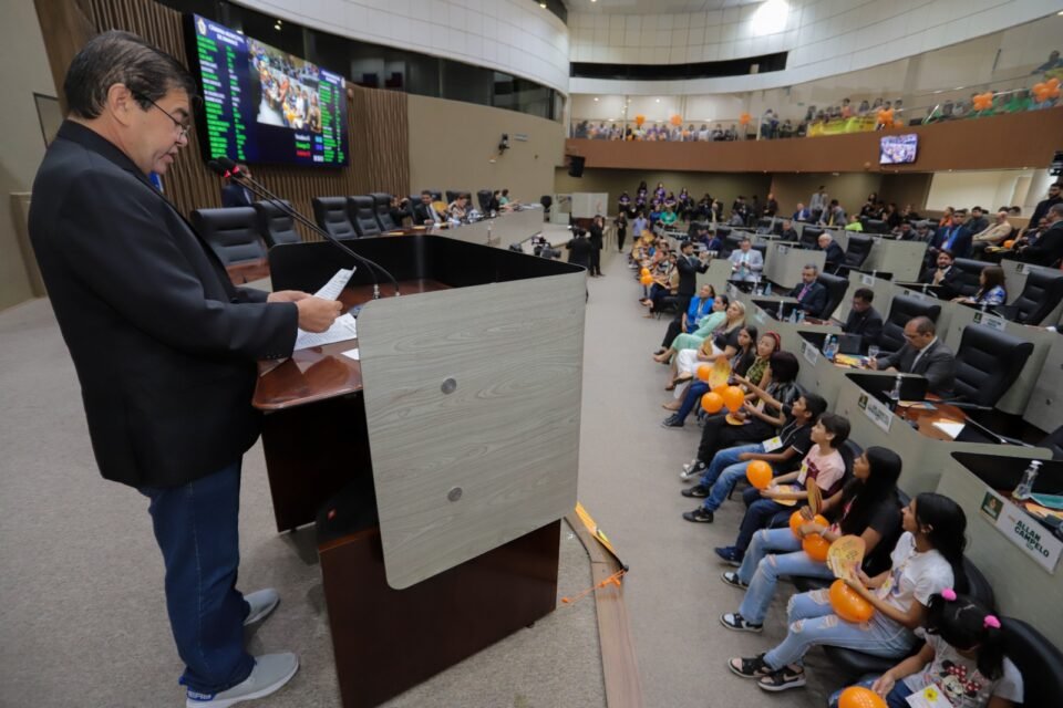 Dando início à programação do mês de combate ao abuso e à exploração sexual de crianças e adolescentes, a Prefeitura de Manaus, por meio da Secretaria Municipal da Mulher, Assistência Social e Cidadania (Semasc), participou, nesta quarta-feira, 3/5, de uma Tribuna Popular para a apresentação do plano de ação da campanha municipal “Maio Laranja”. O evento foi realizado no plenário Adriano Jorge, na Câmara Municipal de Manaus (CMM), localizada no bairro Santo Antônio, zona Oeste da cidade.