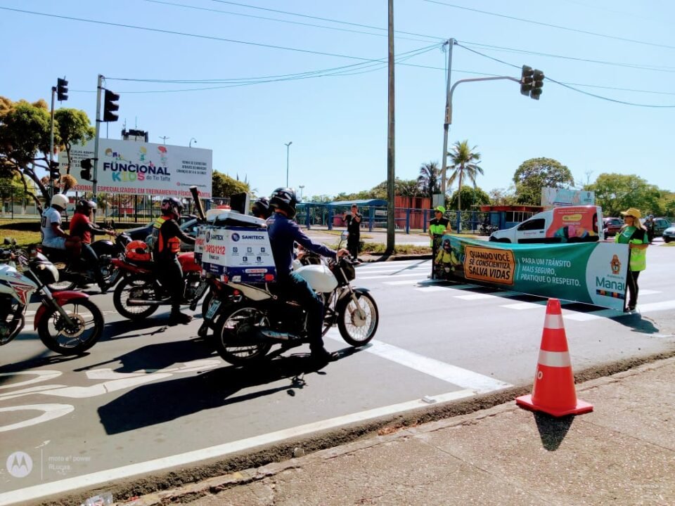 Em comemoração ao Dia do Motorista, celebrado nesta terça-feira, 25/7, a Prefeitura de Manaus, por meio do Instituto Municipal de Mobilidade Urbana (IMMU), realizou ações educativas de conscientização sobre a segurança no trânsito, na avenida Cosme Ferreira, zona Leste da cidade. A equipe de Educação de Trânsito do instituto promoveu aos condutores e pedestres orientações quanto ao respeito à faixa de pedestre e também ao uso correto da área de espera para motocicletas.