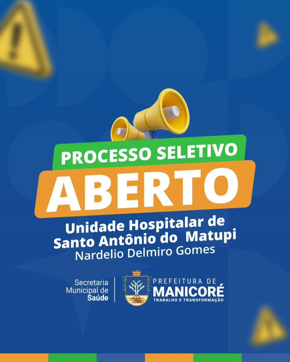 “Este processo seletivo representa um avanço importante para a saúde pública de Manicoré. Estamos ampliando a capacidade de atendimento da nossa unidade hospitalar em Santo Antônio do Matupi, garantindo mais qualidade, agilidade e dignidade no cuidado com a população”, afirmou.