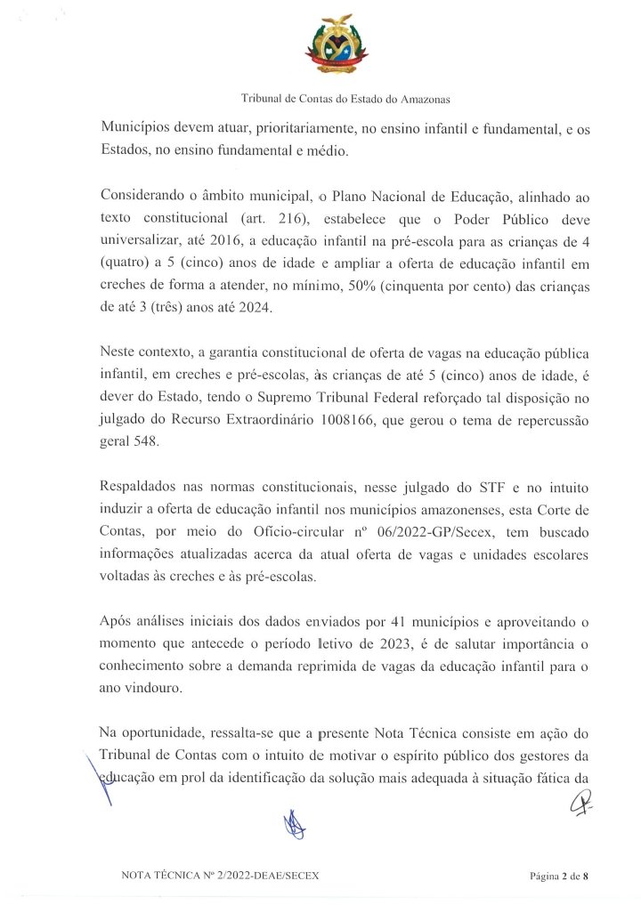 Gestores dos 62 municípios do Amazonas, incluindo Manaus, devem responder o levantamento do Tribunal de Contas do Amazonas (TCE-AM) que visa diagnosticar a demanda por vagas em creches e pré-escolas, atendidas ou não, para o ano letivo de 2023.