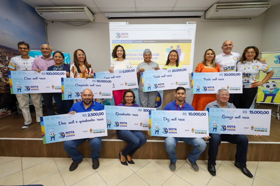 Mais 27 participantes cadastrados na campanha “Nota Premiada Manaus” foram contemplados pela Prefeitura de Manaus por terem pedido seu CPF na Nota Fiscal de Serviço Eletrônica (NFS-e). A entrega dos cheques simbólicos do sorteio nº 2023-02 ocorreu nesta quarta-feira, 12/4, no auditório da Subsecretaria da Receita da Secretaria Municipal de Finanças e Tecnologia da Informação (Semef), localizado na avenida Japurá, 493, Centro.