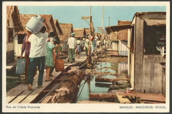 “ERA TUDO IMPROVISADO. MAS AQUELES FLUTUANTES MAIS PRÓXIMOS DA BEIRA ELES TINHAM LUZ ELÉTRICA FORNECIDA PELA ENTÃO COMPANHIA DE ELETRICIDADE DE MANAUS (CEM) QUE JÁ NÃO EXISTE MAIS. ÁGUA POTÁVEL NÃO TINHA, ELES SE ABASTECIAM DA ÁGUA DO RIO NEGRO. […] A MESMA ÁGUA EM QUE JOGAVAM OS DEJETOS NO RIO ERA UTILIZADA PARA TOMAR BANHO E PARA BEBER”, relatou o pesquisador.