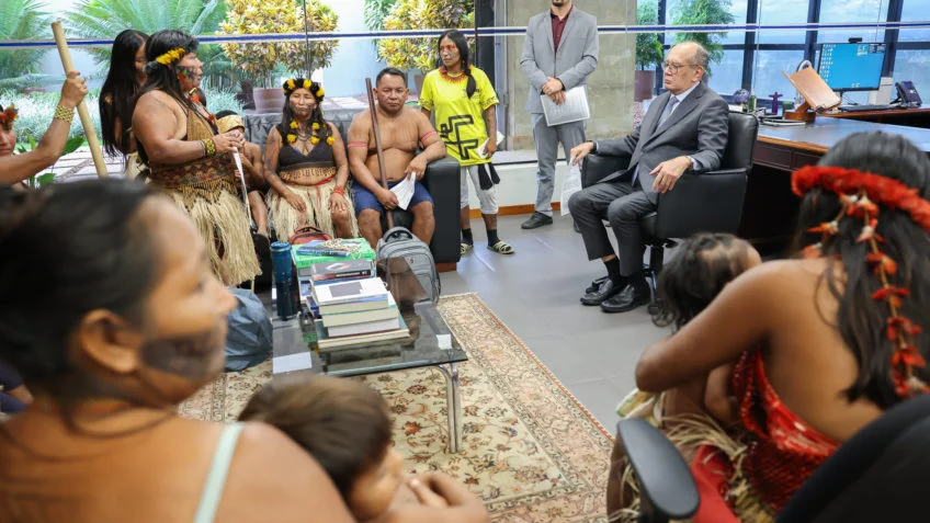 Gilmar Mendes recebe indígenas do povo Munduruku no STF