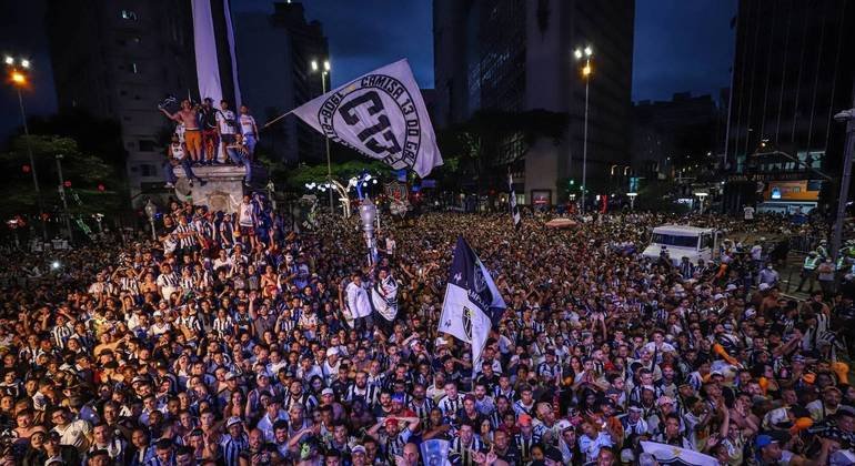 Depois do desembarque na capital mineira, torcida e elenco se dirigiram a Avenida Antônio Carlos, e os jogadores subiram no carro do Corpo de Bombeiros para a festa do título. A carreta foi até a Praça 7, onde a celebração ganhou outros níveis, com fogos de artifício, rojões, sinalizadores, etc.