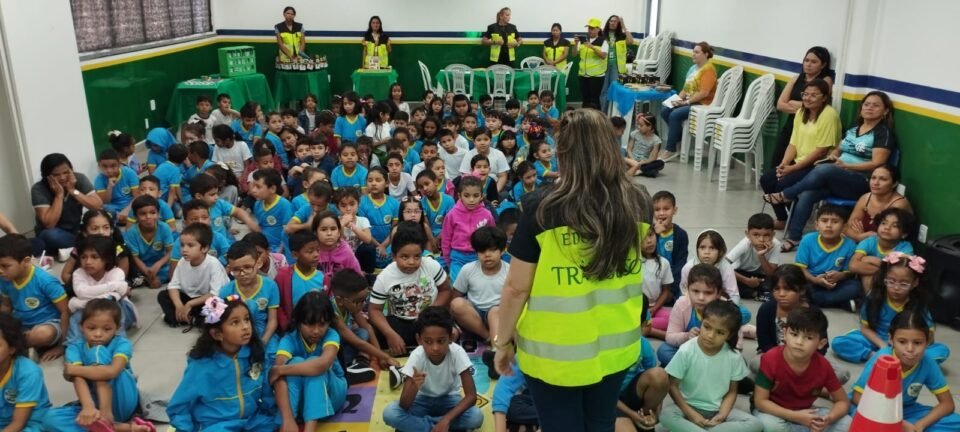 “É se divertindo, que também se aprende sobre normas de trânsito”. Foi com este lema, que a Prefeitura de Manaus, por meio do Instituto Municipal de Mobilidade Urbana (IMMU), promoveu uma ação de educação de trânsito a alunos do 1º e 2º ano do ensino fundamental do Centro Integrado Municipal de Ensino (Cime) Drª Viviane Estrela Marques Rodella, no bairro Lago Azul, zona Norte.