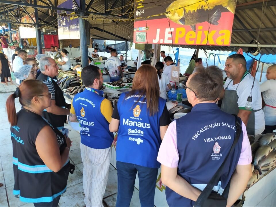 A Prefeitura de Manaus, por meio da Diretoria de Vigilância Sanitária (Visa Manaus) da Secretaria Municipal de Saúde (Semsa), concluiu, nesta quarta-feira, 16/4, a operação “Semana Santa”, realizada com o objetivo de reforçar as boas práticas sanitárias junto aos comerciantes de pescado em feiras populares da capital amazonense. Ao longo da programação, que teve o apoio da Secretaria Municipal de Agricultura, Abastecimento, Centro e Comércio Informal (Semacc), foram visitados mais de 30 boxes de feiras na capital.